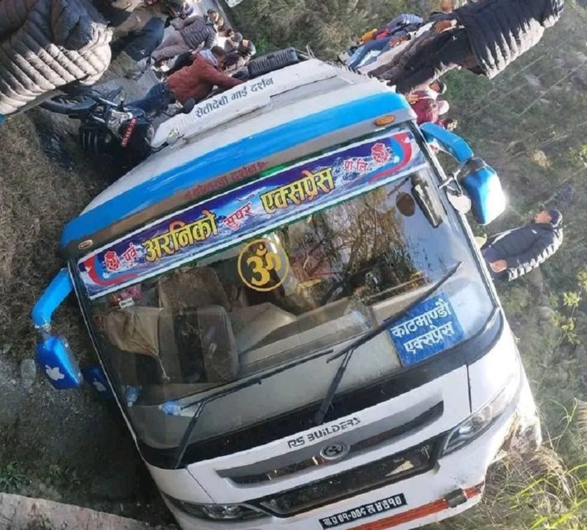 बा.प्र.०१–००६ ख ४७१० नम्बरको बस ब्रेक फेल भएर सडकको भित्तामा पल्टिएको जानकारी प्रहरीले दिएको छ।