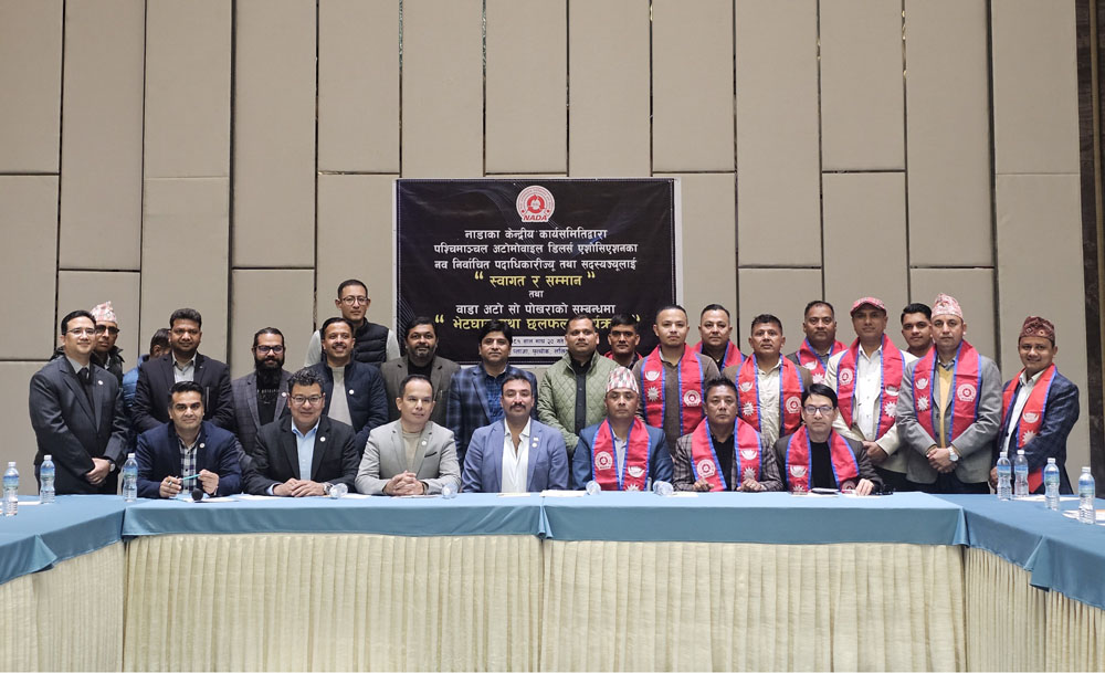 नेपाल अटोमोबाइल डिलर्स एशोसिएशन (नाडा) ले आफ्नो संस्थागत सदस्य पश्चिमाञ्चल अटोमोबाइल डिलर्स एशोसिएशन (वाडा) का नव निर्वाचित पदाधिकारी तथा सदस्यहरुलाई सम्मान गरेको छ।