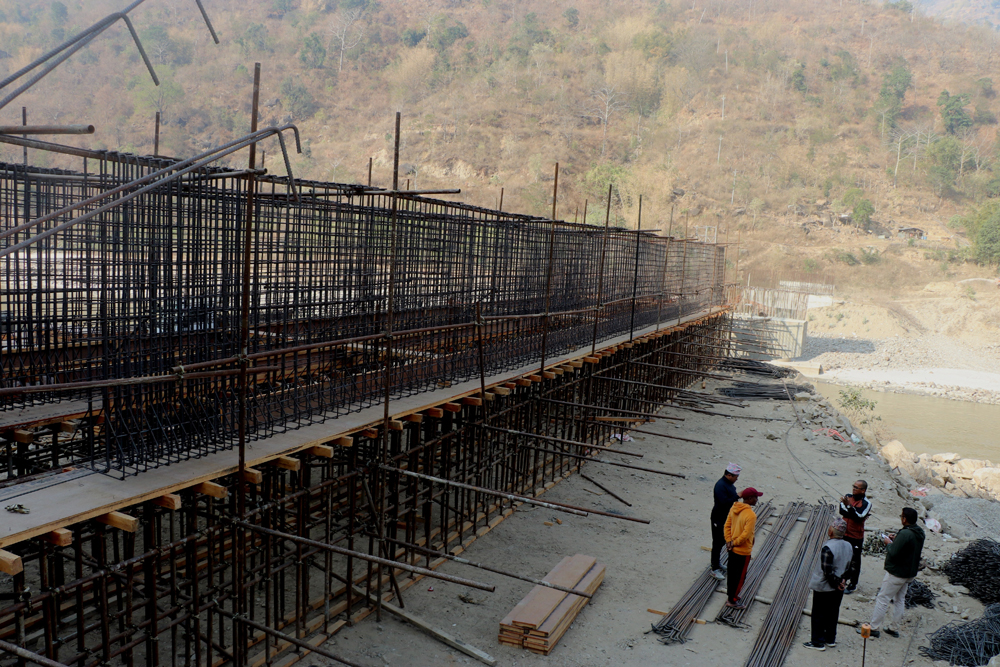 पहिलो इस्पानको ढलानको तयारीका साथ आवश्यक काम भइरहेको निर्माण कम्पनीले जनाएको छ । यो इस्पानको रड बिछ्याउने तथा फर्मा राख्ने काम अन्तिम चरणमा पुगेको ‘साइट इन्चार्ज’ नारायण चौधरीले जानकारी दिनुभयो ।
