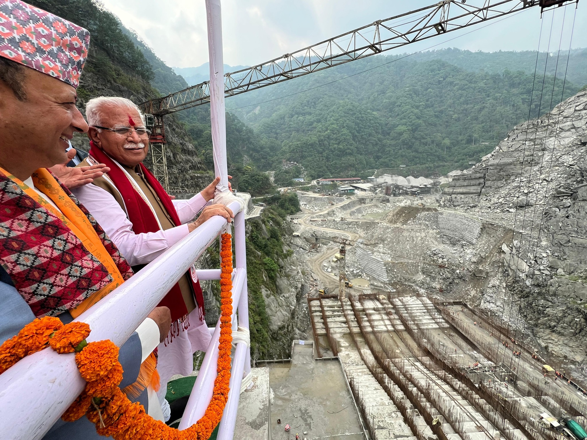 ऊर्जामन्त्री खड्का र भारतीय विद्युत्मन्त्री खट्टरद्धारा अरुण तेस्रोको निरीक्षण
