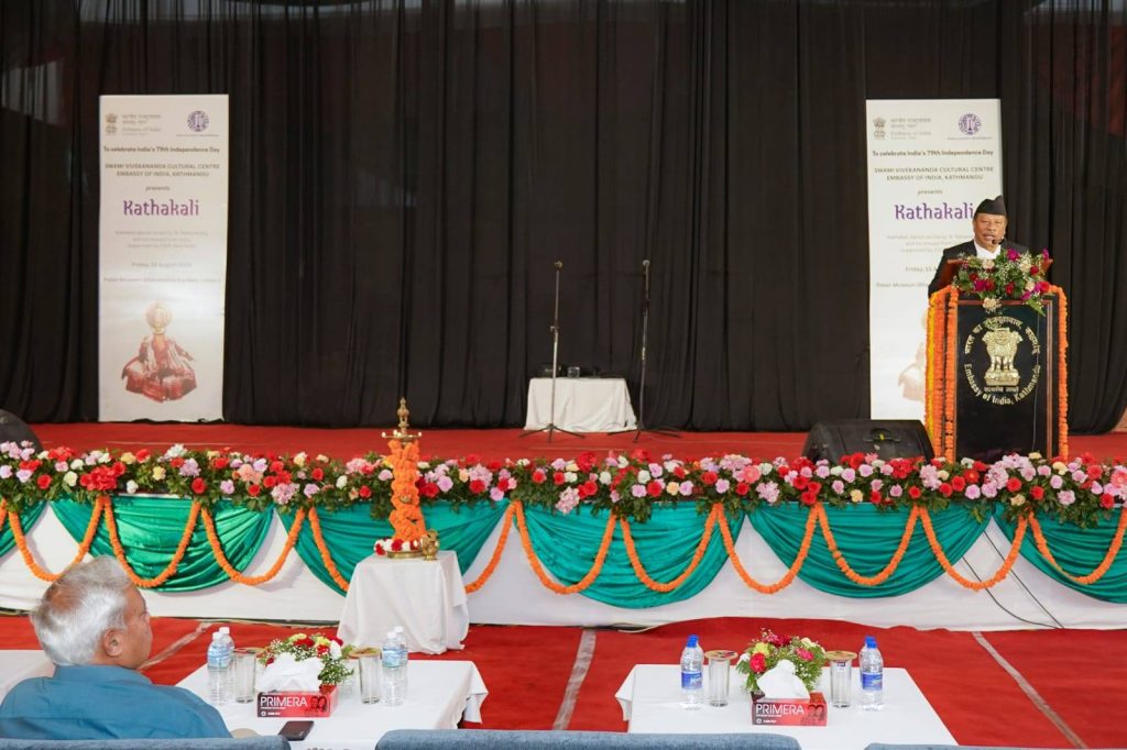 साँझको मुख्य आकर्षण वरिष्ठ भारतीय कलाकार एन। रमणकुट्टीको नेतृत्वमा रहेको प्रख्यात समूहद्वारा प्रस्तुत कथकली नृत्य प्रदर्शन थियो। रंगीन र भावपूर्ण यो परम्परागत नृत्यले भारतको समृद्ध सांस्कृतिक सम्पदाको झलक प्रस्तुत गर्यो र उपस्थित सबैलाई मन्त्रमुग्ध बनाएको थियो ।