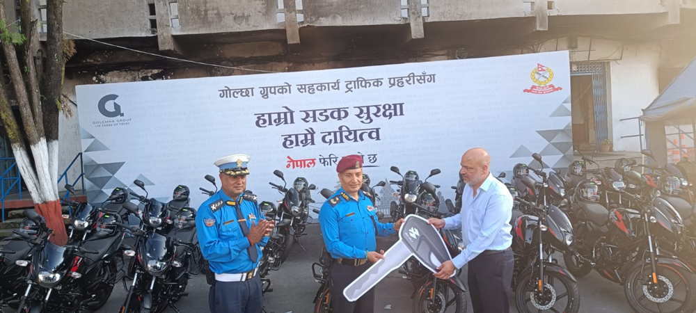 गोल्छा ग्रुपले काठमाडौँ उपत्यका ट्राफिक प्रहरी कार्यालयलाई २० थान मोटरसाइकल हस्तान्तरण गरेको छ ।