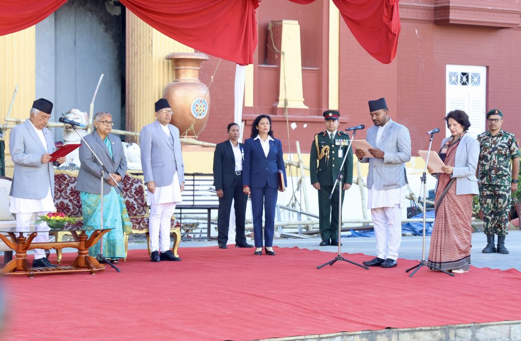 राष्ट्रपति रामचन्द्र पौडेलले राष्ट्रपति कार्यालय, शीतलनिवासमा आयोजित विशेष समारोहमा नवनियुक्त स्वास्थ्य तथा जनसङ्ख्यामन्त्री डा सुधा गौतम र युवा तथा खेलकुदमन्त्री बब्लु गुप्तालाई शपथ दिलाउनुभएको हो । यसअघि चार मन्त्रीले शपथ लिने भनिए पनि अन्तिम समयमा दुई जना मन्त्रीले मात्रै आज शपथ लिनुभएको छ ।