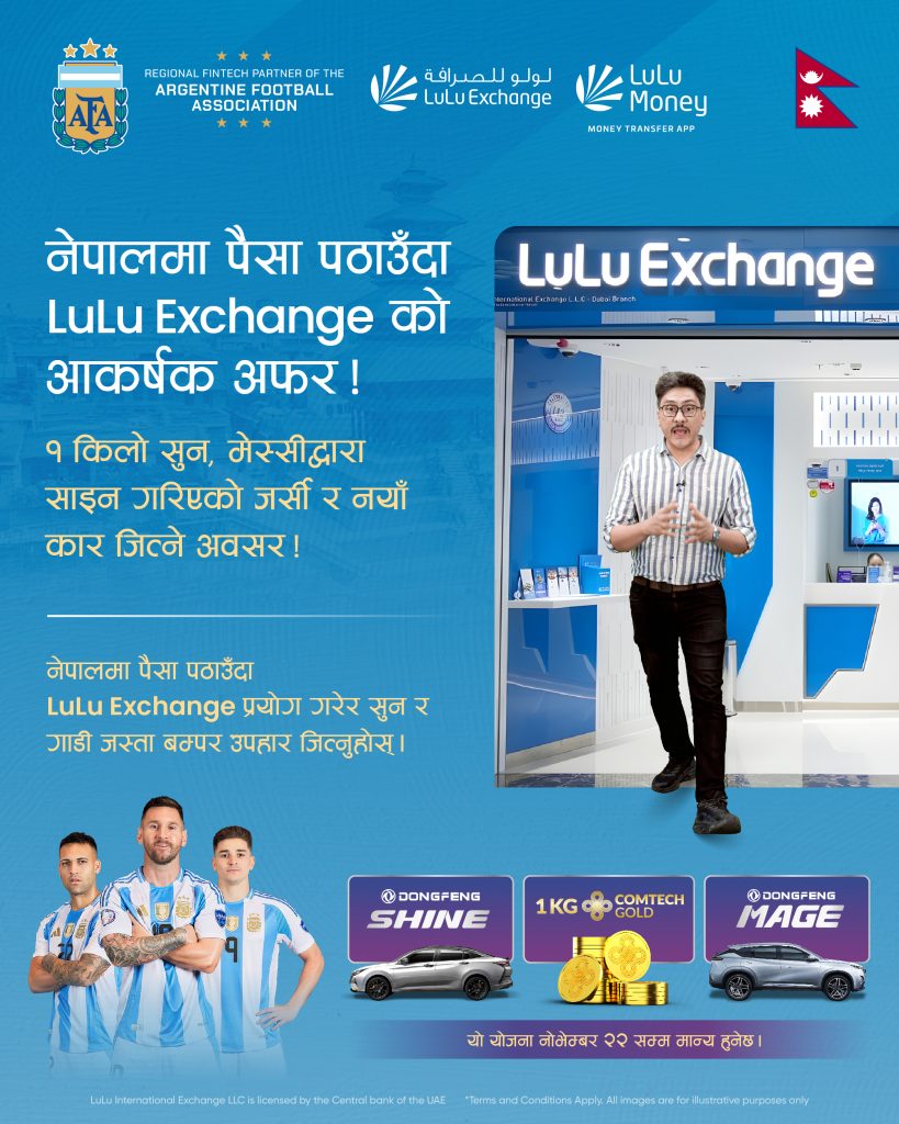 लुलु एक्सचेन्ज अफरः १ किलो सुन, मेस्सीद्वारा साइन गरिएको जर्सी र कार जित्ने अवसर