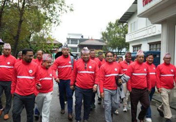 उनीसहित अन्य नेताहरू एउटै पोशाकमा निर्वाचन आयोग पुगेका हुन् ।