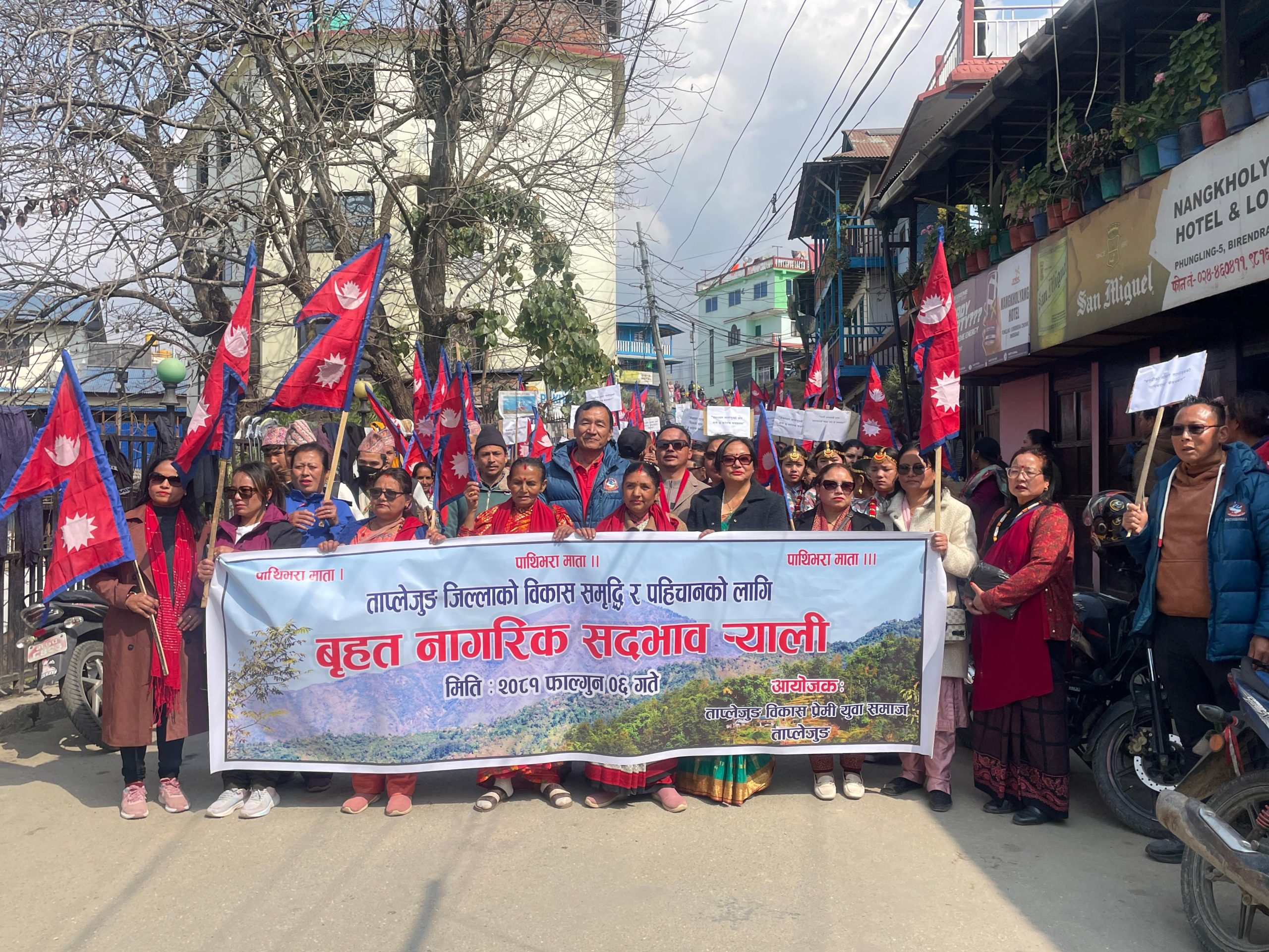स्थानीयले लगानीमैत्री वातावरण सृजना गर्न सरकारलाई आग्रह गर्दै विभिन्न प्लेकार्ड र ब्यानरसहित प्रदर्शनमा सहभागी भएका हुन् । ताप्लेजुङको विकास र सम्मृद्धि रोक्न गरी कार्य नगर्न समेत उनीहरुले आग्रह गरेका छन् ।